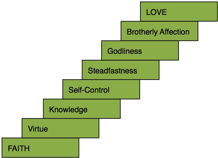 5For this very reason, make every effort to supplement your faith with virtue, and virtue with knowledge, 6and knowledge with self-control, and self-control with steadfastness, and steadfastness with godliness, 7and godliness with brotherly affection, and brotherly affection with love. 8For if these qualities are yours and are increasing, they keep you from being ineffective or unfruitful in the knowledge of our Lord Jesus Christ.